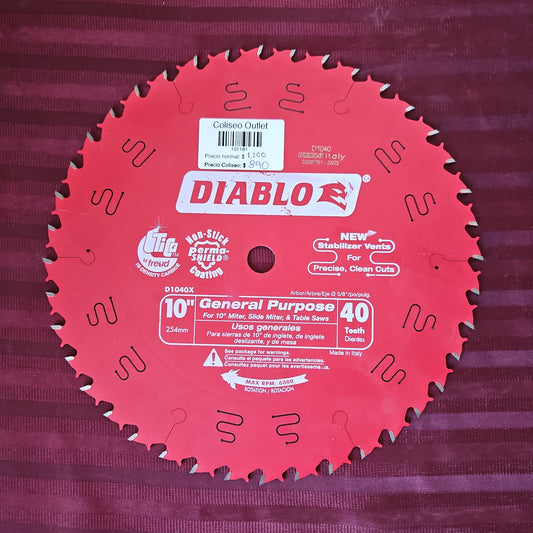 Disco 10" de corte para madera con 40 dientes para sierra circular - Diablo (Nuevo, sin empaque)