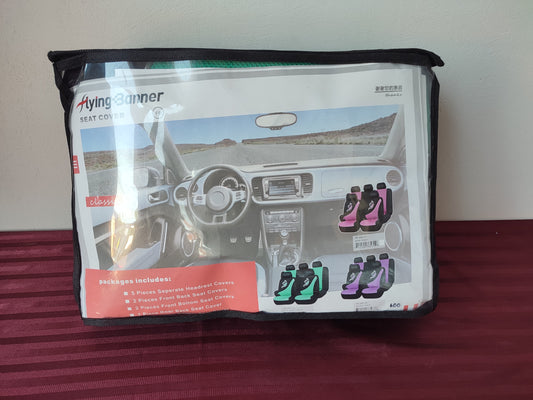 Juego de cubreasientos universal para asientos delanteros y traseros color verde con negro - Flying Banner (Nuevo, pequeño detalle estético)