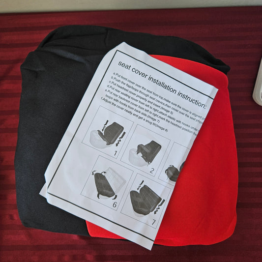 Juego de cubreasientos universal para asientos delanteros y traseros color negro con rojo - Auto Plus (Nuevo)