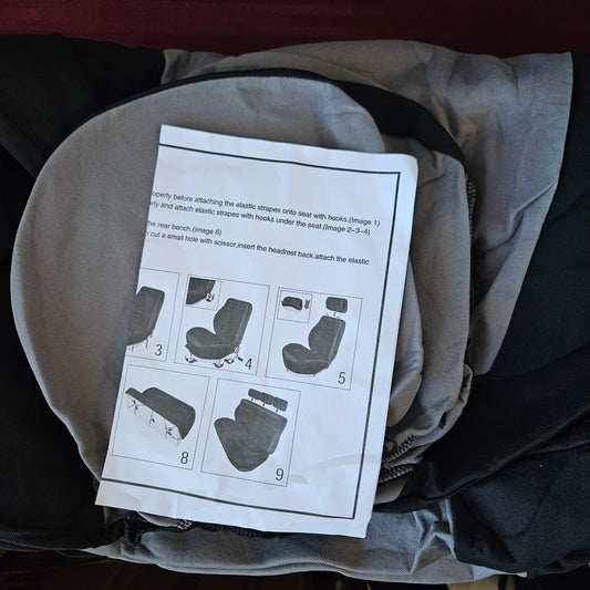 Juego de cubreasientos universal para asientos delanteros y traseros color negro con gris - Auto Plus (Nuevo)
