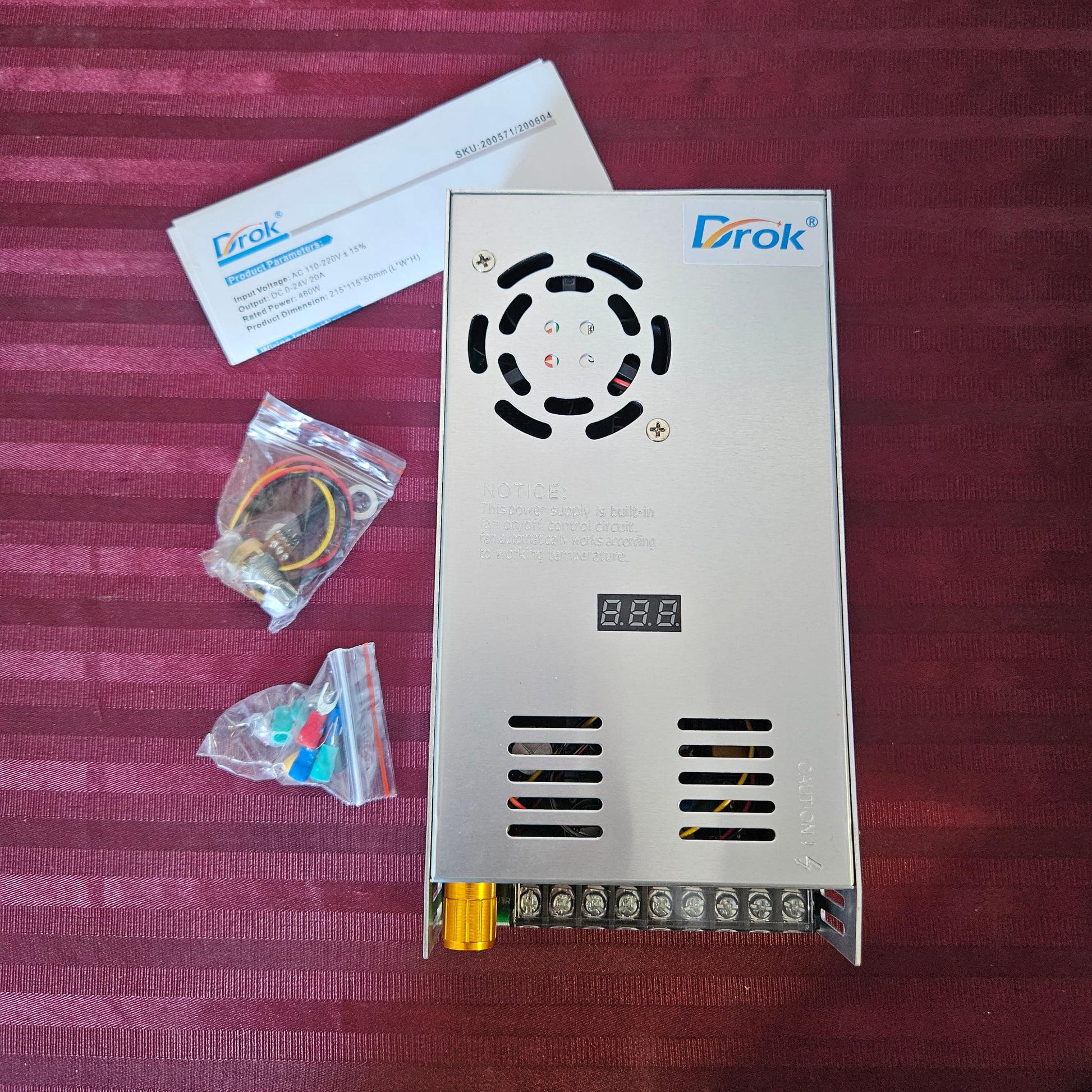 Fuente de alimentación AC 110V/220V a DC 0-24 V - Drok (Nuevo, caja abierta)
